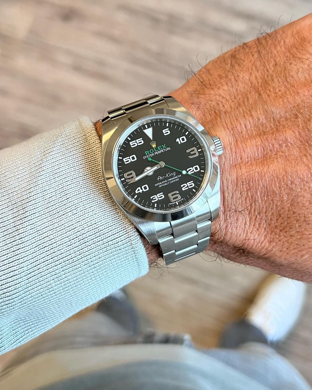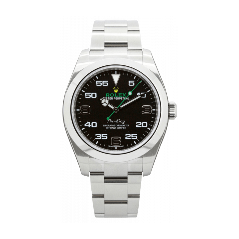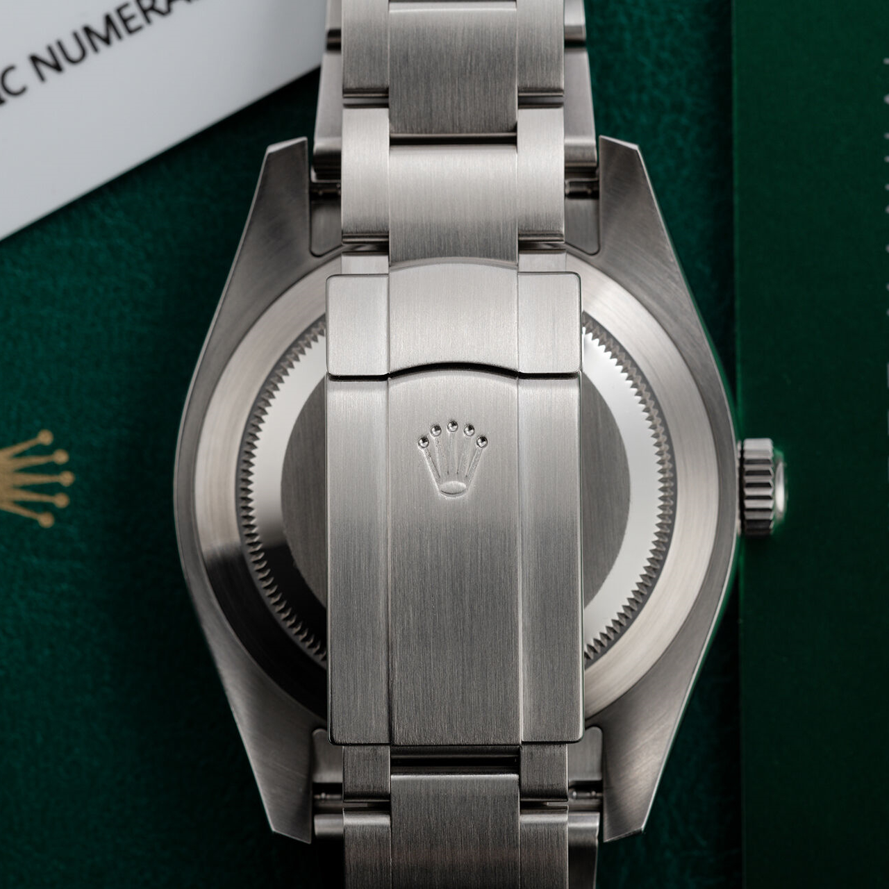 Rolex released a new edition of the sporty Air-King in 2022 under reference 126900. Much to the delight of even the most die-hard Rolex enthusiasts, the new Air-King now has its own case with newly-added crown guards and uses the next-generation caliber 3230 time-only dial. It also keeps the same Bloodhound-inspired dial that defined the modern Air-King in 2016 alongside its predecessor ref. 116900 with similar Arabic hour markers, centrally-mounted Mercedes hands, and a vibrant green and gold Rolex logo. The silvered Arabic hour markers seen on reference 116900 were replaced with sportier Chromalight Arabic markers, and a zero was added to the 5-hour marker. Lastly, the bracelet received Rolex's iconic Oysterlock safety clasp. Although seemingly small, these changes are typical of Rolex as the company continues its quest to perfect every aspect of the Rolex Air-King. There is no need to join a long waitlist.