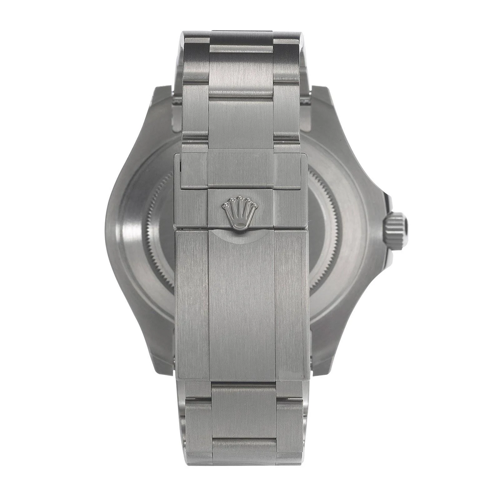 The Oyster bracelet of the Yacht-Master 42 is made from RLX titanium with ceramic inserts, providing both durability and flexibility. The bracelet features the Easylink extension link, allowing for easy adjustment of the bracelet length by approximately 5mm for a perfect fit on the wrist. The Oysterlock safety clasp ensures a secure and comfortable fit, making it ideal for sports and outdoor activities.