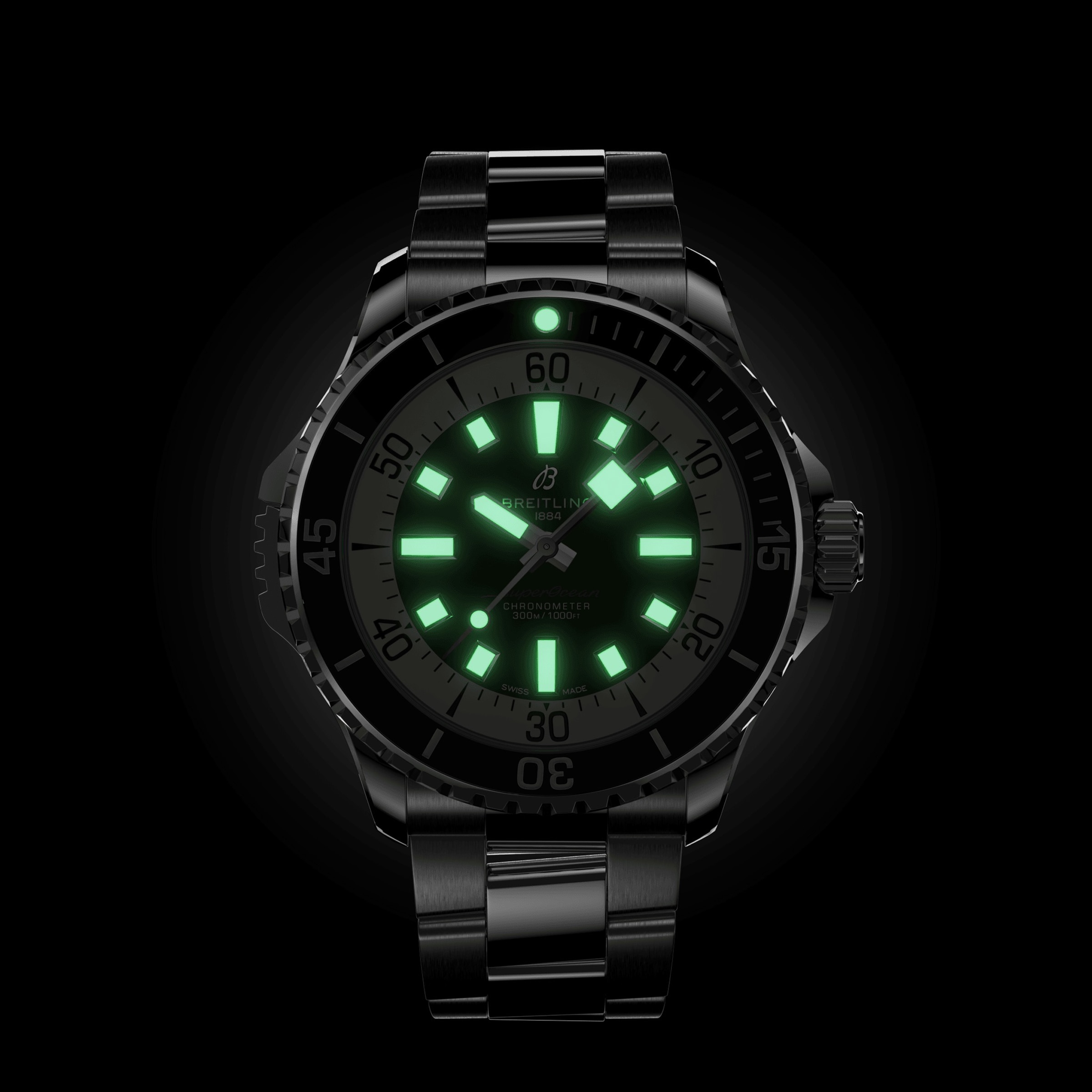 Performance and style for all your water-based pursuits. In the 1960s, the new sport of scuba diving was all the rage. For divers, timing was everything, and Breitling set out to give them the most clear-cut dive watch possible by eliminating any feature that didn’t support their lifesaving needs underwater. This pared-down watch was named the Slow Motion. What remained were clean lines, chunky luminescent indexes, squared-off hands and a high-contrast dial ring, all aimed at maximum legibility. Practical, yes. But what people really fell in love with was the look. The new Superocean retraces the Slow Motion's celebrated design codes, while adding modern features, like a ceramic-inlayed bezel and brightly colored dials. Broad hands and indexes in luminescent Super-LumiNova® allow for easy readability underwater. The watch is water resistant to 300 m (1000 ft), as well as being shock-, sand- and saltwater-resistant. Its scratch-proof ceramic inlayed bezel will never wear or fade. For safety, the bezel is uni-directional on most sizes and bi-directional with a patented lock on the 46 mm. Best of all, this is no longer strictly a dive watch—surf with it, swim with it, hit the beach bar with it, then wear it out to dinner. The Superocean perfectly balances the nostalgia of its heritage with a fresh new look.