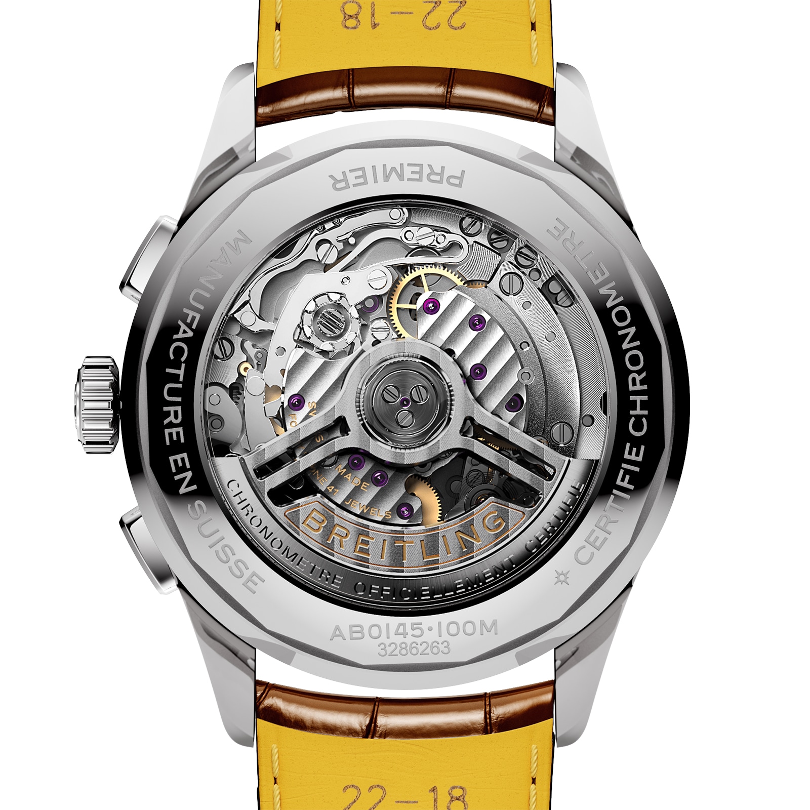 To create its modern Premier, Breilting preserved distinctive vintage-Premier details, including the smooth fixed bezel, twin-register dial, streamlined rectangular pushers and applied Arabic numerals. The Premier B01 Chronograph 42 is available in an array of dial colours and case materials. It comes on a choice of classic alligator leather strap or sleak 7-row metal bracelet. Today's Premier also lives up to Willy Breitling's uncompromising technical standards with its exceptional self-winding movement - the COSC- Certified Breilting Manufacture Caliber 01- designed for maximum precision, reliability and functionality.