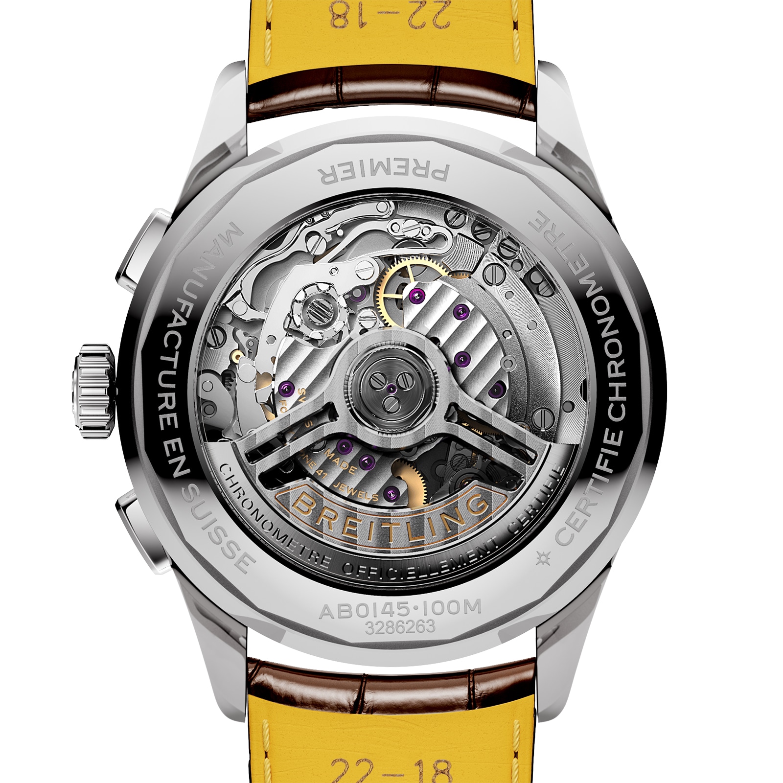 To create its modern Premier, Breilting preserved distinctive vintage-Premier details, including the smooth fixed bezel, twin-register dial, streamlined rectangular pushers and applied Arabic numerals. The Premier B01 Chronograph 42 is available in an array of dial colours and case materials. It comes on a choice of classic alligator leather strap or sleak 7-row metal bracelet. Today's Premier also lives up to Willy Breitling's uncompromising technical standards with its exceptional self-winding movement - the COSC- Certified Breilting Manufacture Caliber 01- designed for maximum precision, reliability and functionality.