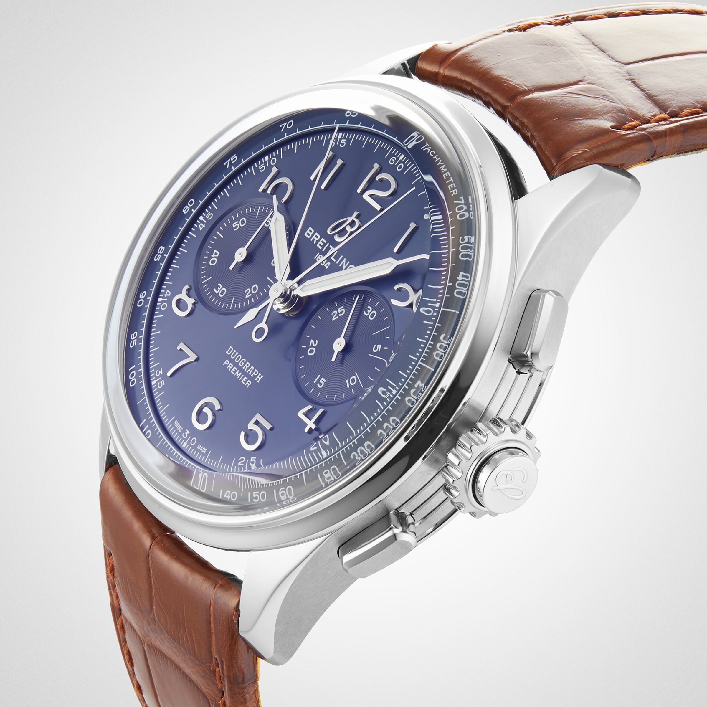 Paying tribute to three generations of inventors, this Premier Duograph model brings together the brand’s unrivalled watchmaking expertise with an unmistakable stamp of taste. Reigniting the elegance of the original collection, these models are driven by the manually wound, cosc-certified Breitling B15 calibre movement, with two patented innovations – one simplifies the mechanism while the other enhances accuracy.