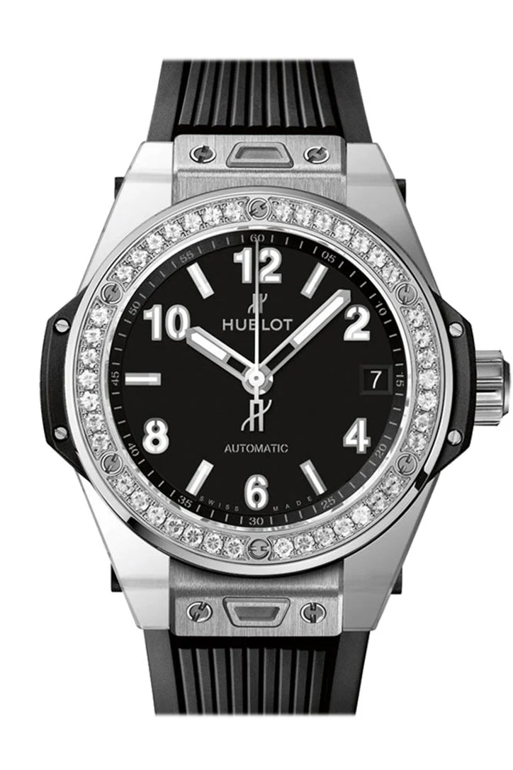 Hublot Big Bang One Click 39mm Ladies Watch 465.SX.1170.RX.1204 39mm Case Dimensions Stainless Steel Case Material Black Dial Color Scratch Resistant Sapphire Crystal Fixed Bezel 100m/330ft Water Resistance Transparent Case Back Rubber Band Material Black Color/Finish Push Button Deployant Buckle Clasp Automatic Movement