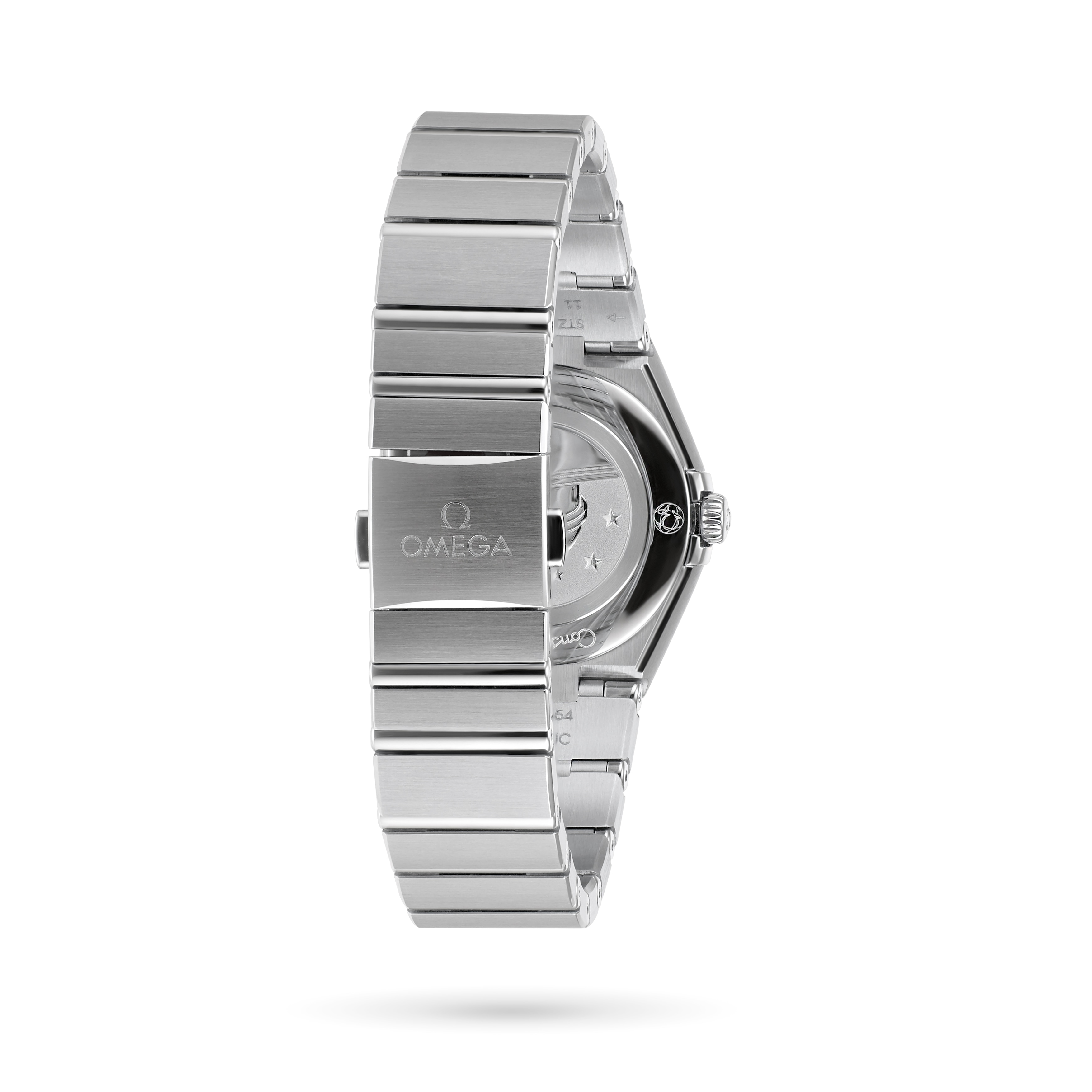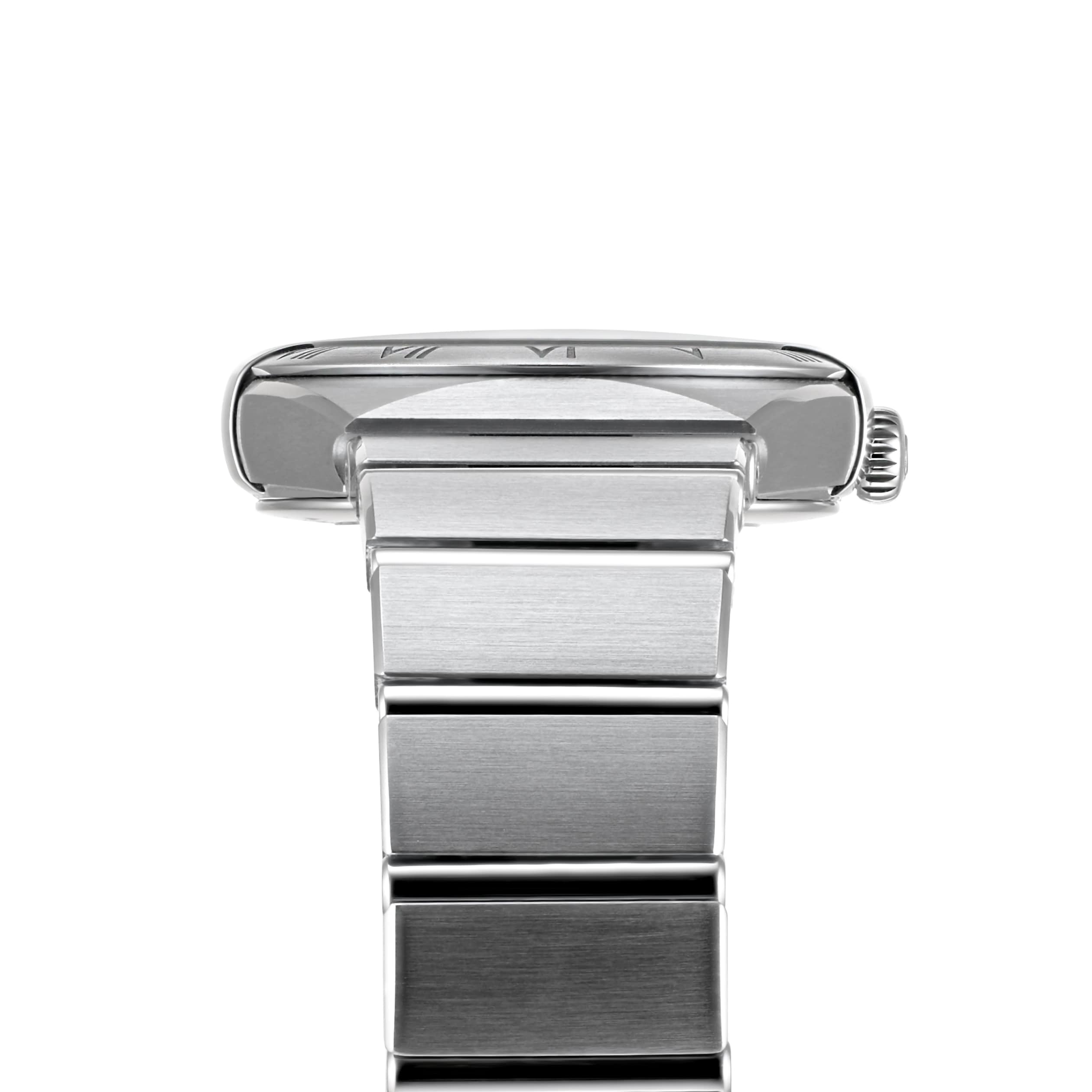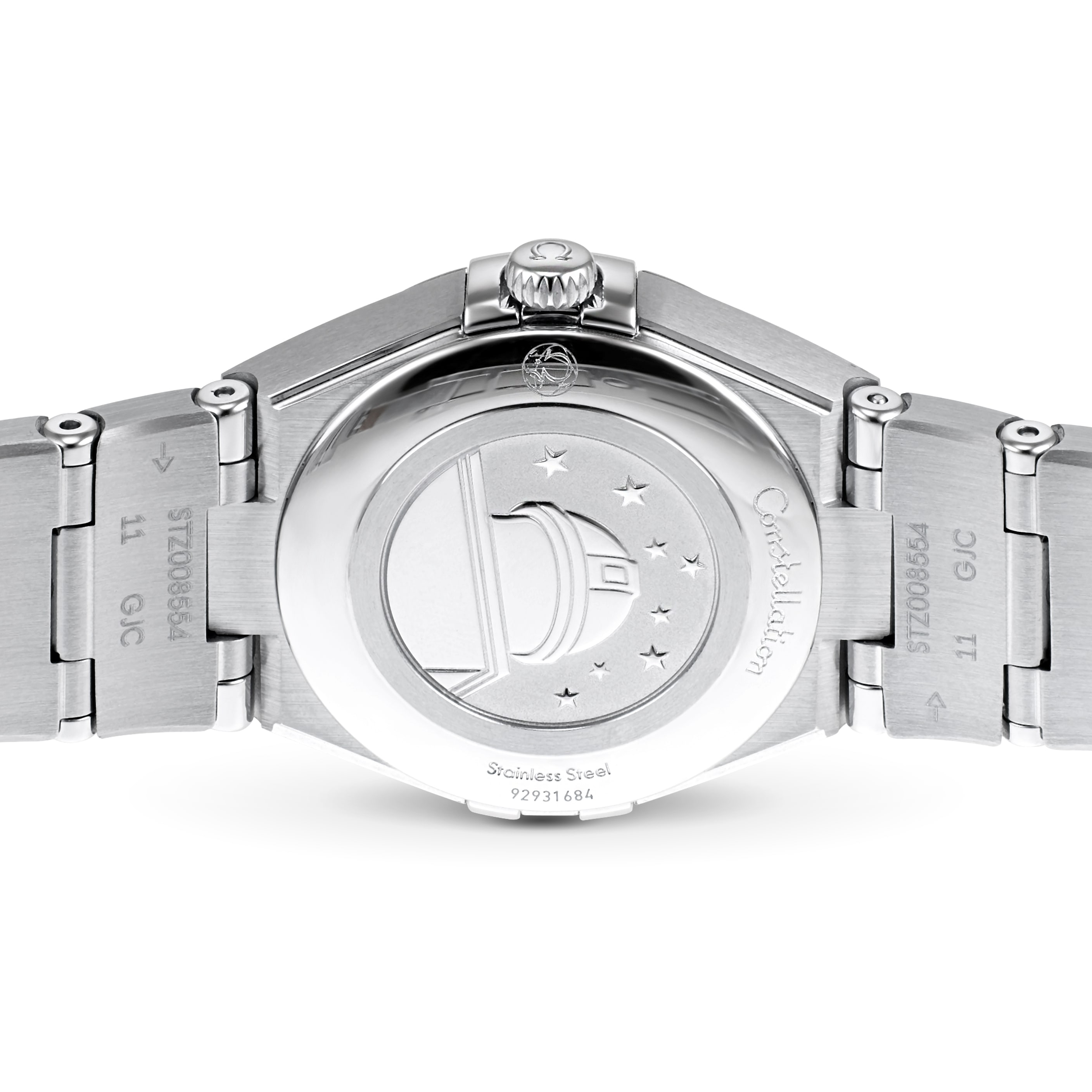 The sun-brushed grey dial exudes elegance with 18K white gold hands and sparkling diamond hour markers. Inspired by the original Constellation models, the bezel is engraved with Roman numerals, while the 4061 calibre Quartz movement offers flawless precision.
