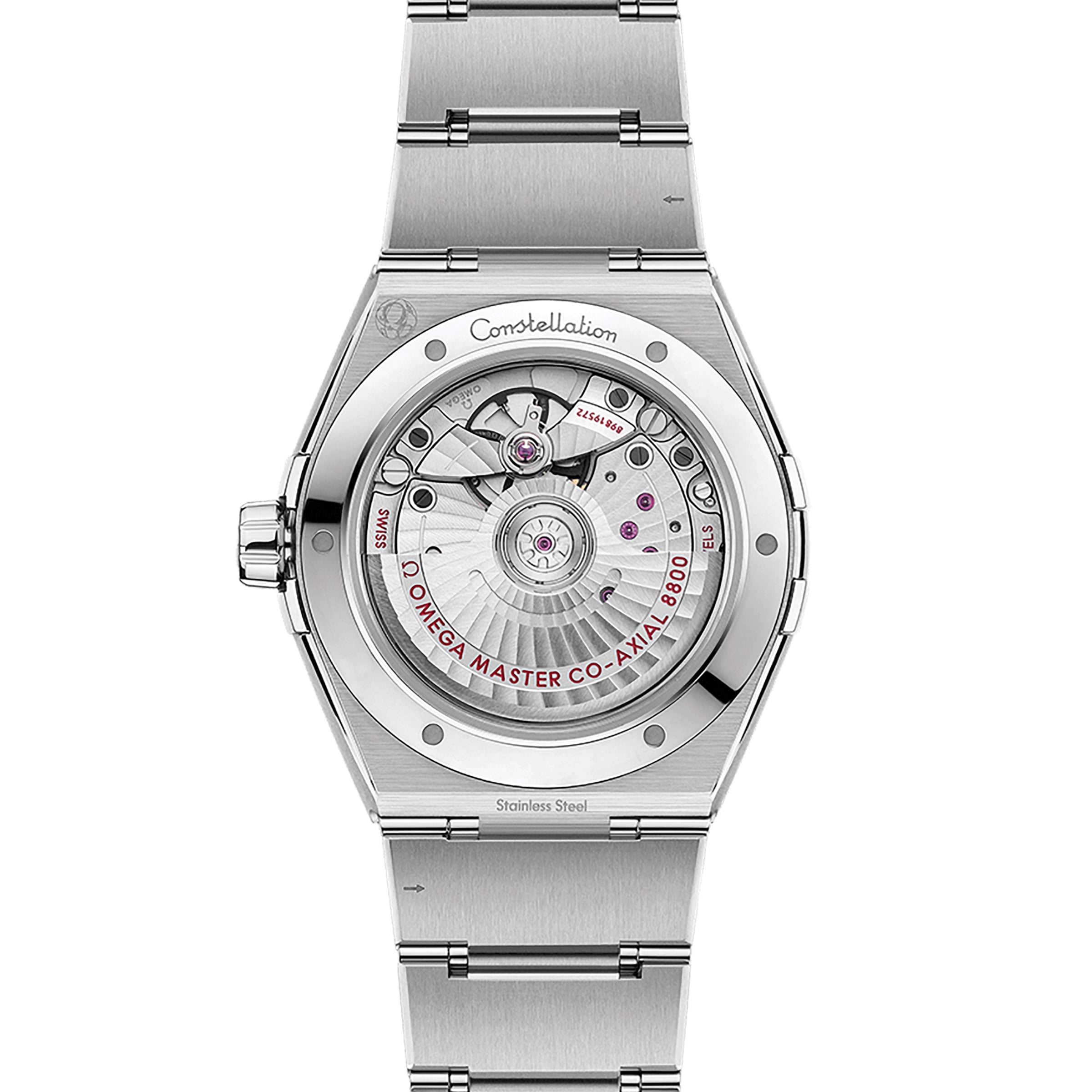 The dramatic and enduring design of the OMEGA Constellation is characterised by its famous half-moons, “claws” on the case and mono-rang bracelet. This 39 mm stainless steel model features a bezel engraved with Roman numerals, a sun-brushed black dial and a date window at the 6 o'clock position. The hands, OMEGA logo, Constellation star and indexes are all in 18K white gold. At the heart of this timepiece is the OMEGA Co-Axial Master Chronometer Calibre 8800, visible through the domed scratch-resistant sapphire crystal.