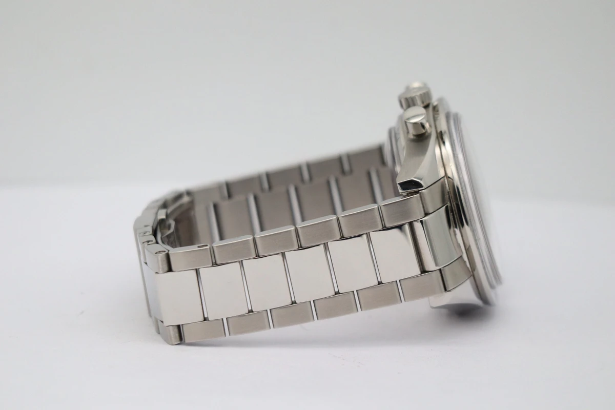 This 40.5mm timepiece features a stainless steel case, paired with a matching bracelet.