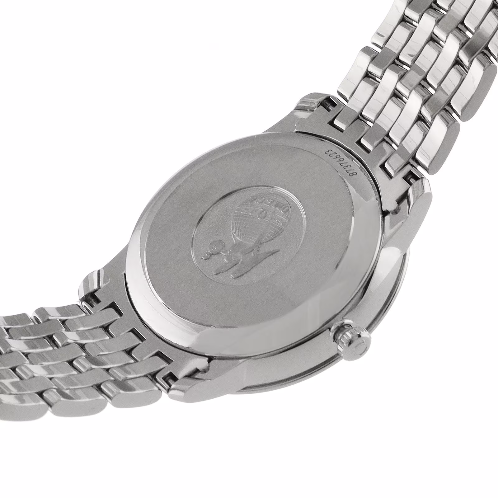 The 39.5 mm stainless steel case is presented on a polished Prestige bracelet. This timepiece is powered by the Co-Axial calibre 2500.