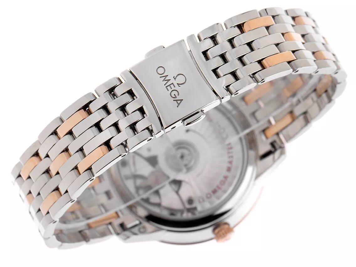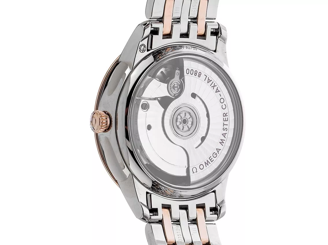 This Master Chronometer certified watch is presented on a stainless steel - Sedna™ Gold bracelet and is driven by the OMEGA Master Co-Axial Calibre 8800, which can be admired through the scratch-resistant sapphire crystal caseback.