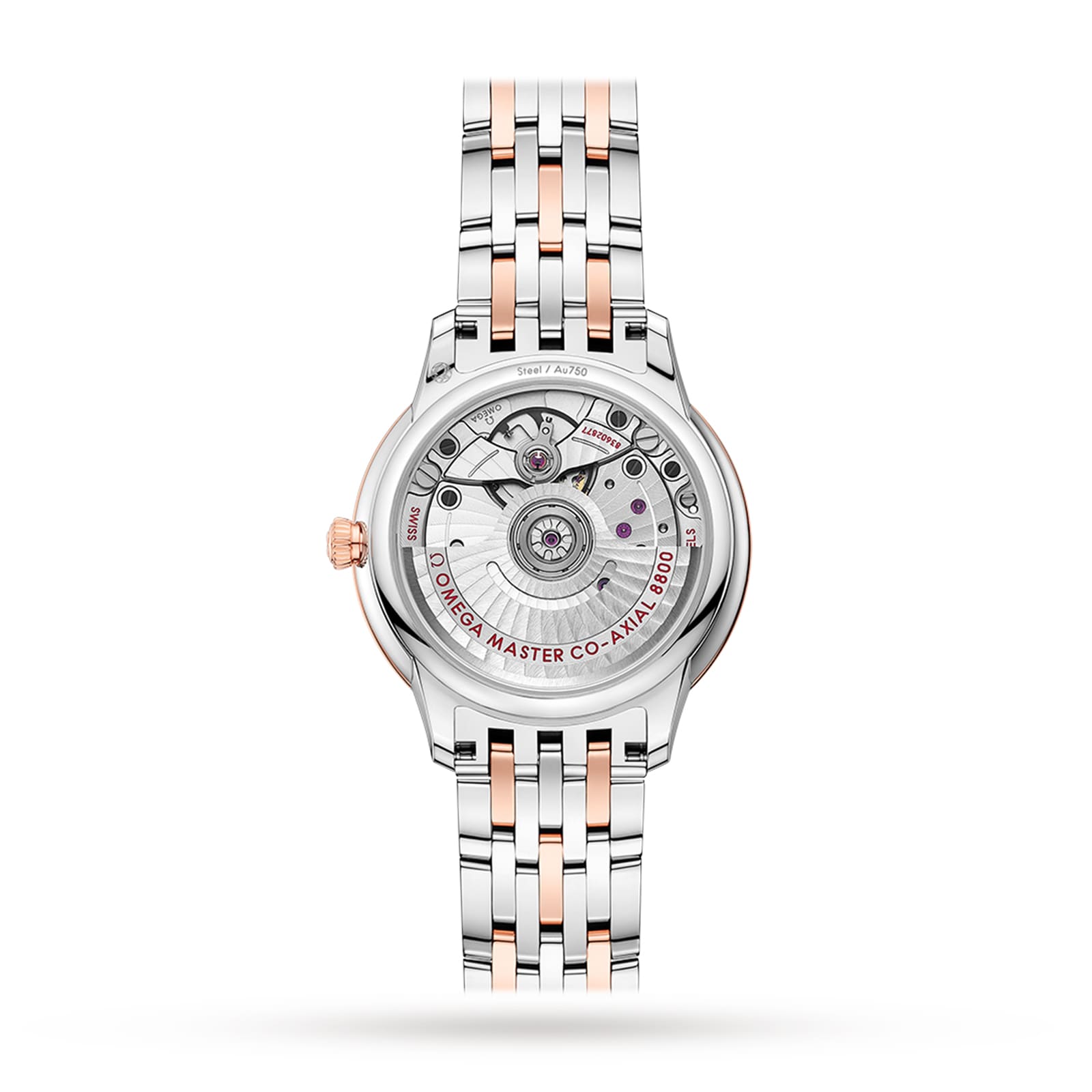 This Master Chronometer certified watch is presented on a stainless steel - Sedna™ Gold bracelet and is driven by the OMEGA Master Co-Axial Calibre 8800, which can be admired through the scratch-resistant sapphire crystal caseback.