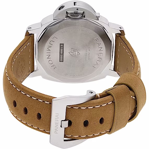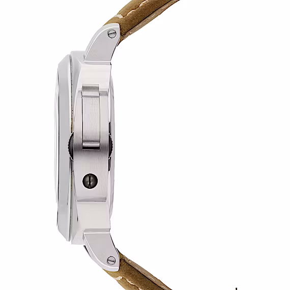 Hand-wound mechanical, P.6000 calibre, 15 ½ lignes, 4.5 mm thick, 19 jewels, 21,600 alternations/hour. Incabloc® anti-shock device. Power reserve 3 days, one barrel. 110 components. FUNCTIONS Hours, minutes CASE Diameter 44mm, AISI 316L polished steel BACK Brushed steel DIAL Black with luminous Arabic numerals and hour markers. DIAL Black with luminous Arabic numerals and hour markers. WATER RESISTANCE "10 bar (~100 metres)" STRAP Scamosciato Brown, Beige Stitching, 24.0/22.0 Standard size