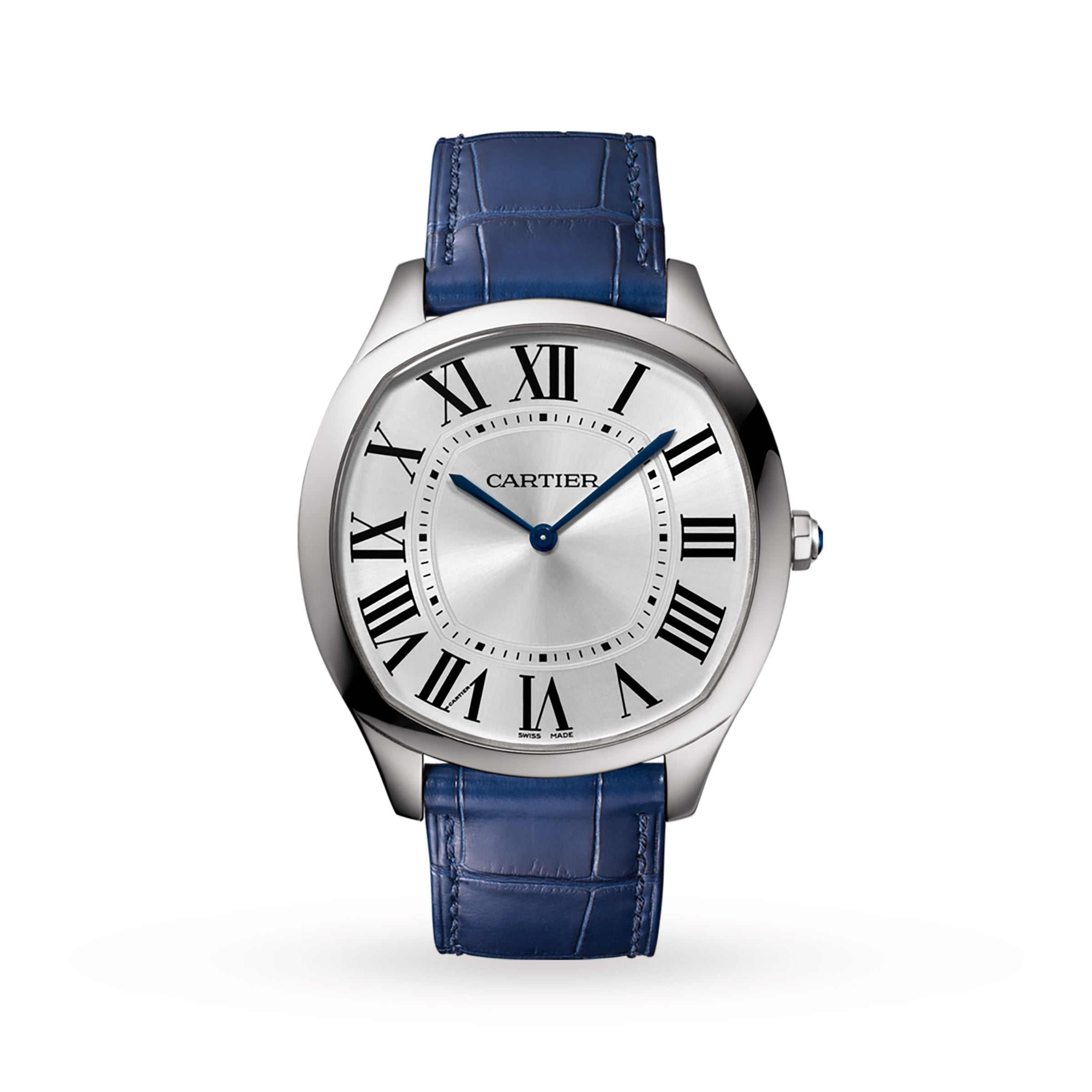 Cartier Drive De Cartier Extra-Flat Watch Large Model, Hand-Wound Mechanical Movement, Steel, Leather-P17310951