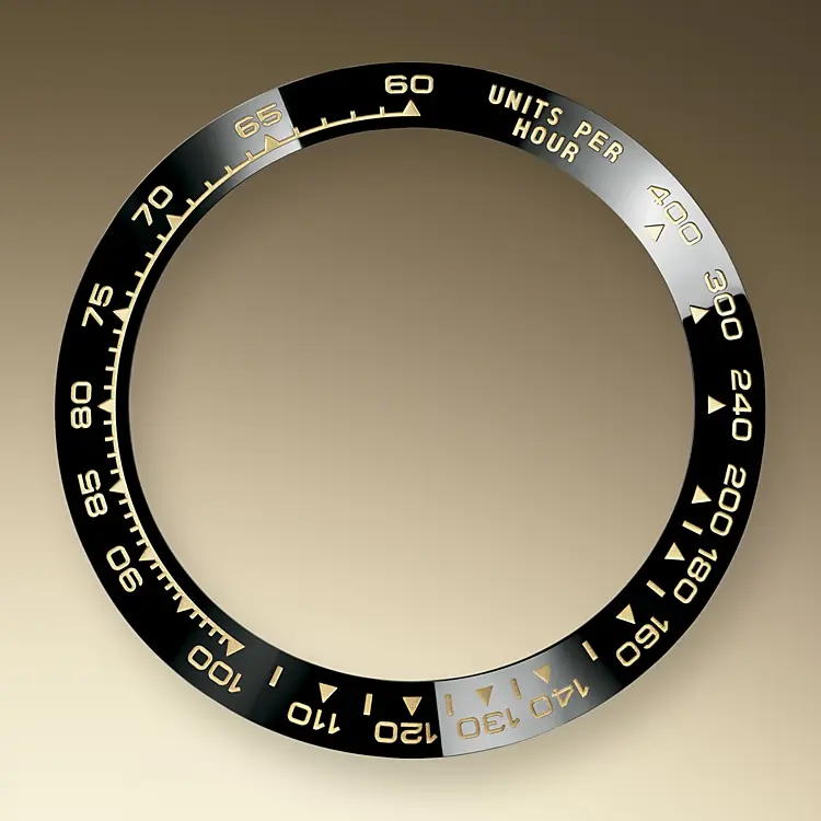 A key part of the model’s identity is the bezel molded with a tachymetric scale for measuring average speeds of up to 400 miles or kilometers per hour. Blending of high technology with sleek aesthetics, the black bezel is reminiscent of the 1965 model that was fitted with a black Plexiglas bezel insert.