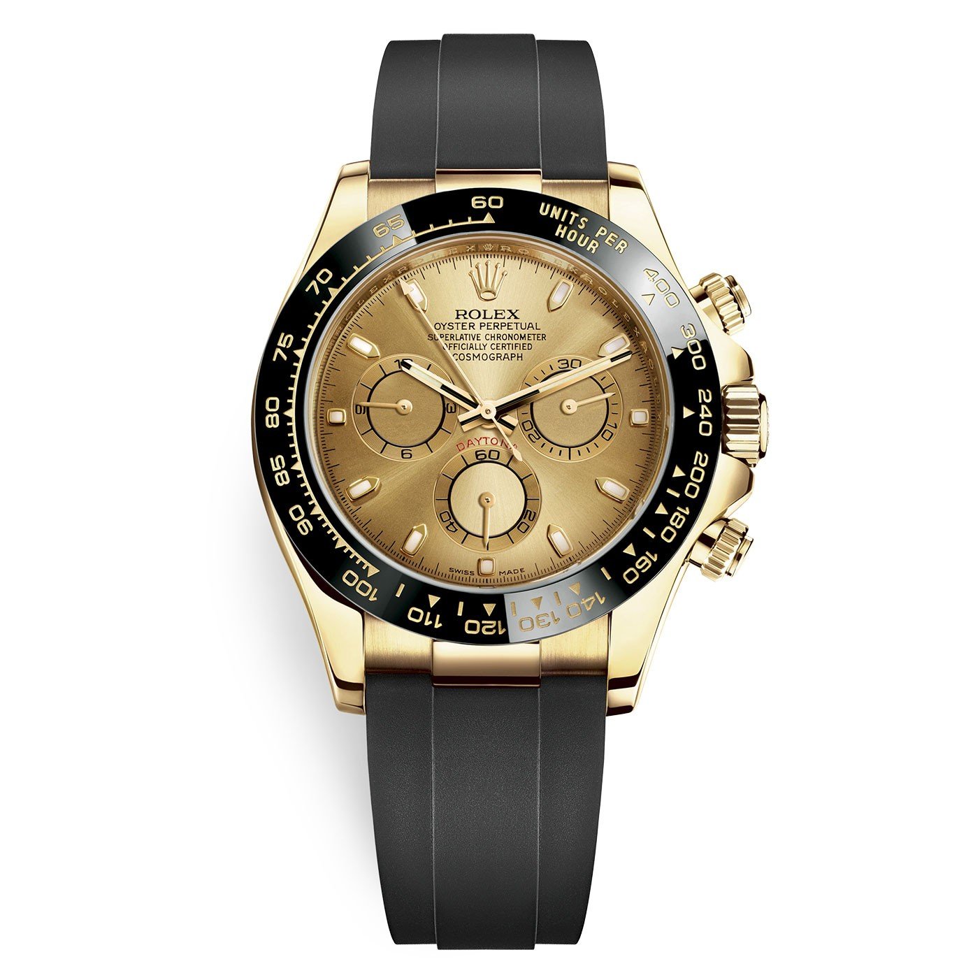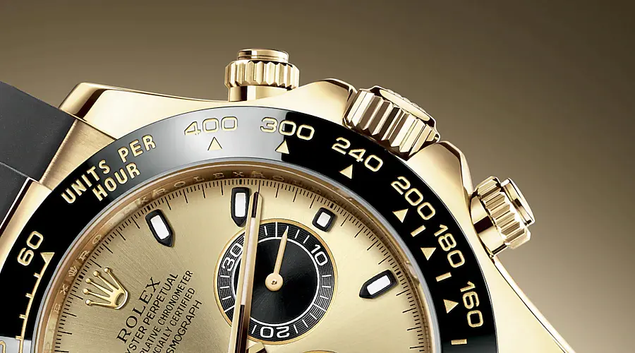 The Daytona’s chronograph feature functions are activated by pushers that screw down like the winding crown when they are not in use, guaranteeing waterproofness to 100 metres. One press to start, stop or reset the chronograph produces a crisp, clear click that was perfected using the most advanced technology. watchmakers also perfected the mechanism to suit the ideal finger pressure on the pushers, and engineered it to provide an instantaneous and accurate start to the timing without sacrificing reliability.