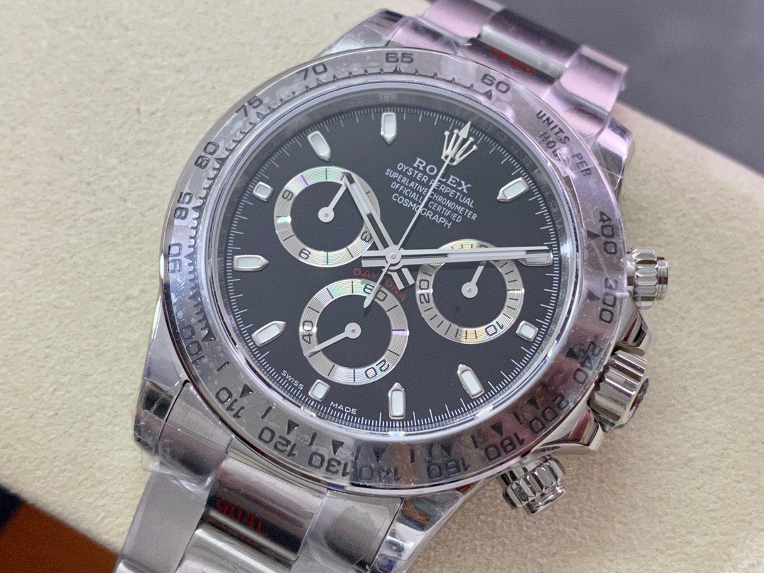 Daytona Swiss Replica watches looks, feels and have the exact same dimensions as the original Rolex using incredible precision down to a nanometer! So the weight is exactly the same with the original Rolex and all watch parts inside/out are interchangeable with a genuine part.