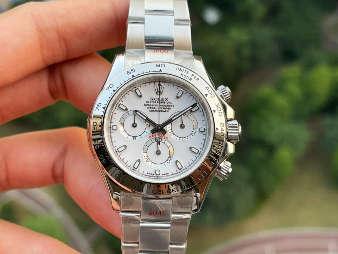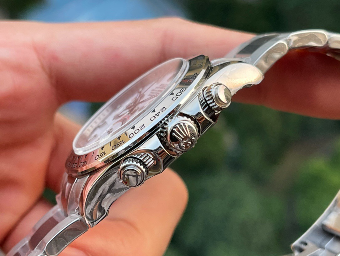 Daytona Swiss Replica watches looks, feels and have the exact same dimensions as the original Rolex using incredible precision down to a nanometer! So the weight is exactly the same with the original Rolex and all watch parts inside/out are interchangeable with a genuine part.
