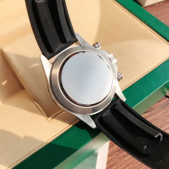 The Daytona’s chronograph feature functions are activated by pushers that screw down like the winding crown when they are not in use, guaranteeing waterproofness to 100 metres. One press to start, stop or reset the chronograph produces a crisp, clear click that was perfected using the most advanced technology. watchmakers also perfected the mechanism to suit the ideal finger pressure on the pushers, and engineered it to provide an instantaneous and accurate start to the timing without sacrificing reliability.