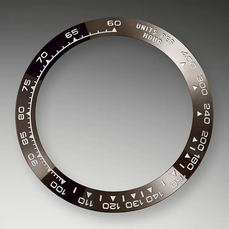 A key part of the model's identity is the bezel moulded with a tachymetric scale for measuring average speeds of up to 400 miles or kilometres per hour. The monobloc Cerachrom bezel in high-tech ceramic offers a number of advantages: it is corrosion resistant, virtually scratchproof and the colour is unaffected by UV rays. This extremely durable bezel also offers an exceptionally legible tachymetric scale, thanks to the deposition of a thin layer of platinum in the numerals and graduation via a PVD (Physical Vapour Deposition) process. The monobloc Cerachrom bezel is made in a single piece and holds the crystal firmly in place on the middle case, ensuring waterproofness.
