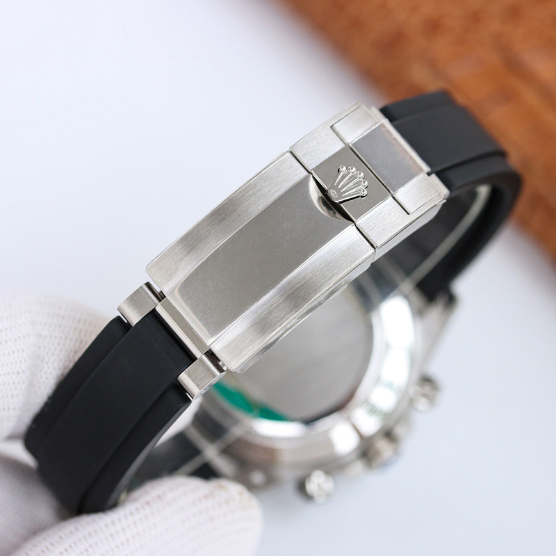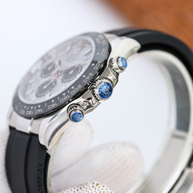 The Daytona’s chronograph feature functions are activated by pushers that screw down like the winding crown when they are not in use, guaranteeing waterproofness to 100 metres. One press to start, stop or reset the chronograph produces a crisp, clear click that was perfected using the most advanced technology. watchmakers also perfected the mechanism to suit the ideal finger pressure on the pushers, and engineered it to provide an instantaneous and accurate start to the timing without sacrificing reliability.